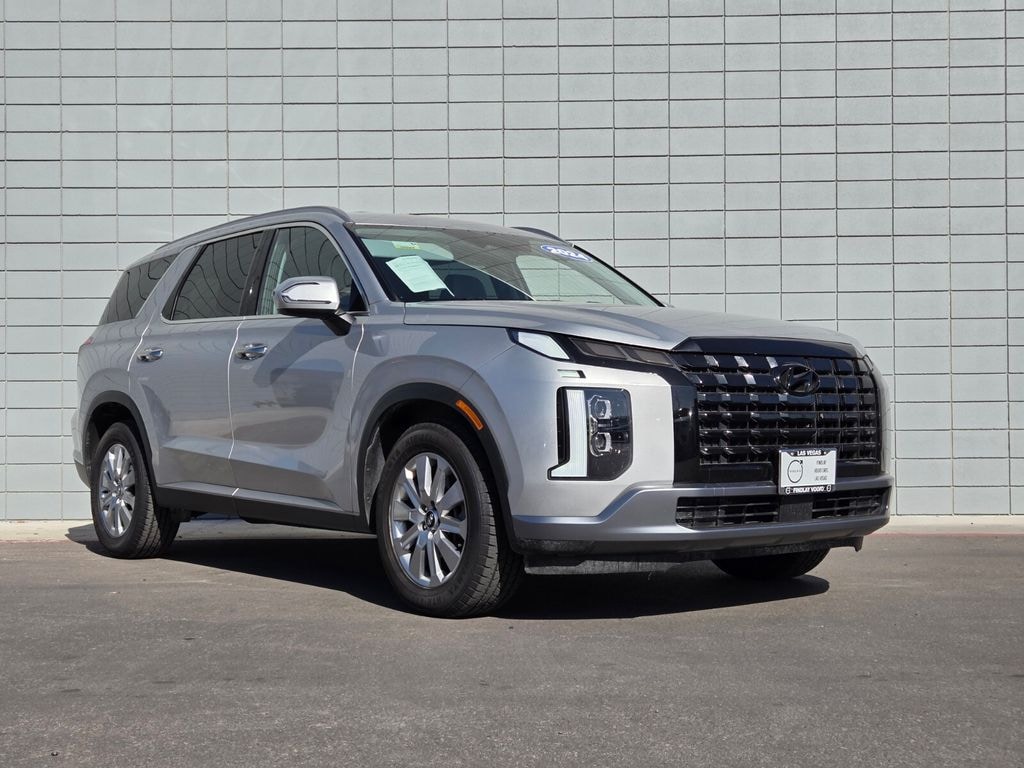 Findlay Volvo Cars Las Vegas proudly offers this Hyundai Palisade with 40628 miles. Typhoon Silver over Gray/Black, this Palisade was ordered with highly desirable factory features like: Option Group 01, 3.510 Axle Ratio, 3rd row seats: split-bench, 4-Wheel Disc Brakes, 6 Speakers, ABS brakes, Air Conditioning, All-Season Fitted Liners, Alloy wheels, AM/FM radio: SiriusXM, Apple CarPlay & Android Auto, Auto High-beam Headlights, Auto-dimming door mirrors, Auto-dimming Rear-View mirror, Automatic temperature control, Brake assist, Bumpers: body-color, Cargo Block, Cargo Cover/Screen, Cargo Tray, Carpeted Floor Mats, Delay-off headlights, Driver door bin, Driver vanity mirror, Dual front impact airbags, Dual front side impact airbags, Electronic Stability Control, Emergency communication system, Exterior Parking Camera Rear, First Aid Kit, Four wheel independent suspension, Front anti-roll bar, Front Bucket Seats, Front Center Armrest, Front dual zone A/C, Front reading lights, Fully automatic headlights, H-Tex Leatherette Seat Trim, Heated door mirrors, Heated Front Bucket Seats, Heated front seats, Illuminated entry, Knee airbag, Low tire pressure warning, Navigation System, Occupant sensing airbag, Outside temperature display, Overhead airbag, Overhead console, Panic alarm, Passenger door bin, Passenger vanity mirror, Power door mirrors, Power driver seat, Power Liftgate, Power passenger seat, Power steering, Power windows, Radio data system, Radio: AM/FM/MP3 Audio System, Rear air conditioning, Rear anti-roll bar, Rear audio controls, Rear reading lights, Rear side impact airbag, Rear window defroster, Rear window wiper, Reclining 3rd row seat, Remote keyless entry, Security system, Speed control, Speed-sensing steering, Split folding rear seat, Spoiler, Steering wheel mounted audio controls, Tachometer, Telescoping steering wheel, Tilt steering wheel, Traction control, Trip computer, Turn signal indicator mirrors, Variably intermittent wipers, Wheel Locks, and Wheels: 18" x 7.5J Painted Finish Alloy.