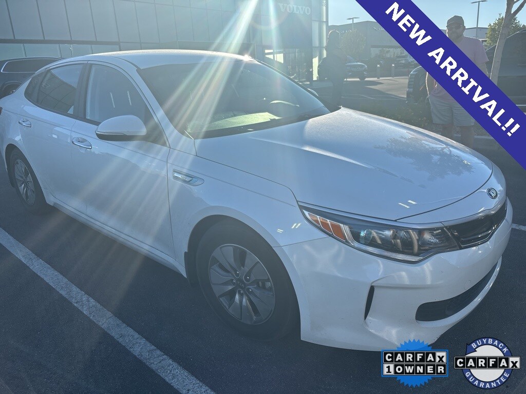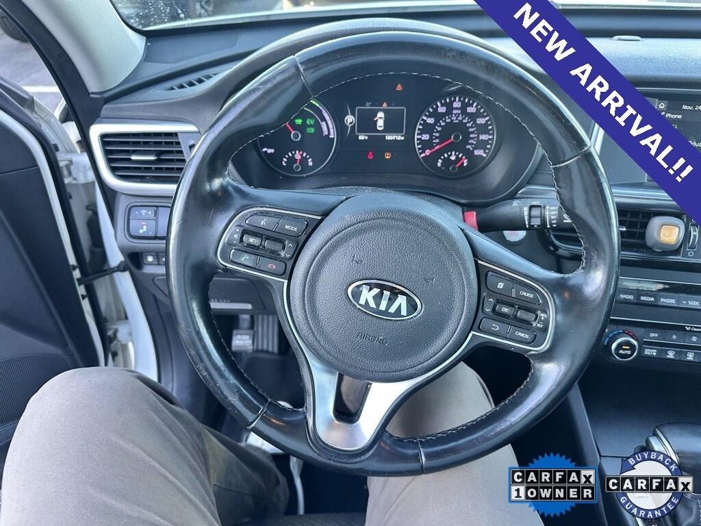 Findlay Volvo Cars Las Vegas proudly offers this Kia Optima Hybrid with 130712 miles. Snow White Pearl over Black, this Optima Hybrid was ordered with highly desirable factory features like: Hybrid Convenience Package (12-Way Power Adjustable Driver's Seat, Acoustic Laminated Front Door Windows, Blind Spot Detection w/Rear Cross-Traffic Alert, Heated Power-Folding Exterior Mirrors, Rear Air Conditioning Vents, Rear Parking Assist System, and USB Charging Ports), 4-Wheel Disc Brakes, 6 Speakers, ABS brakes, Air Conditioning, Alloy wheels, AM/FM radio: SiriusXM, Apple CarPlay & Android Auto, Automatic temperature control, Brake assist, Bumpers: body-color, Cargo Net, Carpeted Floor Mats, Cloth Seat Trim, Delay-off headlights, Driver door bin, Driver vanity mirror, Dual front impact airbags, Dual front side impact airbags, Electronic Stability Control, Emergency communication system, Exterior Parking Camera Rear, Four wheel independent suspension, Front anti-roll bar, Front Bucket Seats, Front Center Armrest, Front dual zone A/C, Front reading lights, Fully automatic headlights, Illuminated entry, Knee airbag, Leather Shift Knob, Leather steering wheel, Low tire pressure warning, Occupant sensing airbag, Outside temperature display, Overhead airbag, Overhead console, Panic alarm, Passenger door bin, Passenger vanity mirror, Power door mirrors, Power steering, Power windows, Radio: AM/FM/MP3/SiriusXM Audio System, Rear anti-roll bar, Rear Bumper Applique, Rear reading lights, Rear seat center armrest, Rear window defroster, Remote keyless entry, Security system, Speed control, Speed-sensing steering, Steering wheel mounted audio controls, Tachometer, Telescoping steering wheel, Tilt steering wheel, Traction control, Trip computer, Turn signal indicator mirrors, Variably intermittent wipers, and Wheels: 16 x 6.5J Alloy.